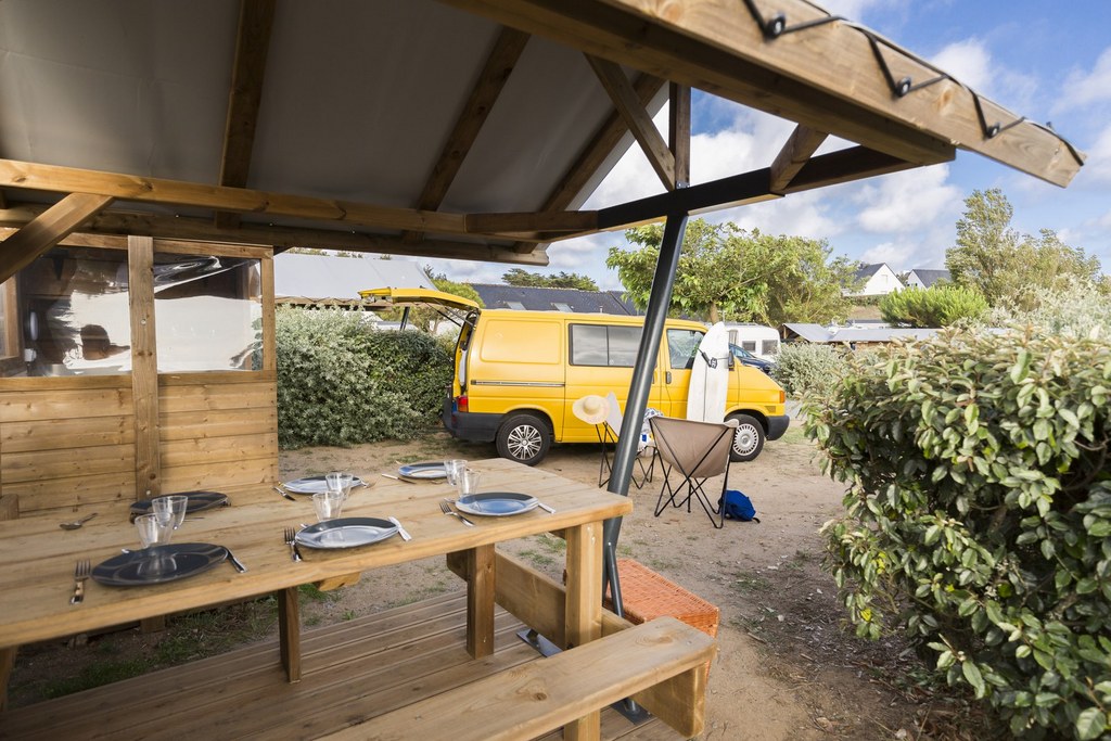 Wählen Sie eine Glamping-Erfahrung in der Natur mit unserer Funflower-Lodge aus Segeltuch, ideal für 4 Personen. Im Campingplatz Les Paludiers in Batz-sur-Mer gelegen, bietet diese Lodge eine einzigartige Umgebung für einen Urlaub im Freien. Sie verfügt über eine überdachte Terrasse von 7 m², die sich perfekt eignet, um die Natur zu genießen, sowie eine praktische Küchenzeile und zwei Schlafzimmer (ein Doppelbett 140 x 190 cm und zwei Einzelstockbetten 90 x 190 cm). Ohne eigenes Bad oder fließendes Wasser befindet sich diese Lodge in der Nähe der Sanitäranlagen für mehr Komfort. Einfachheit, Komfort und Nähe zur Natur – die Funflower verspricht einen angenehmen Aufenthalt an der Atlantikküste, nur wenige Schritte von den Stränden und Salzgärten entfernt.