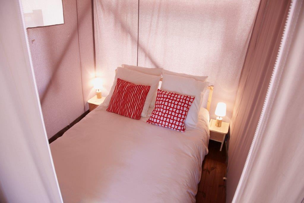 Entdecken Sie unsere auf Stelzen gebaute Zeltkabine, ideal für ein einzigartiges Glamping-Erlebnis inmitten der Natur an der Küste der Loire-Atlantique. Diese geräumige 34 m² große Kabine bietet authentischen Komfort mit zwei Schlafzimmern – eines mit einem Doppelbett (160 x 200 cm) und das andere mit zwei Einzelbetten (90 x 190 cm) – sowie einem privaten Badezimmer und Sanitäranlagen. Die einzigartige Kombination aus Zeltstoff und Holz, ergänzt durch eine große überdachte Terrasse, lädt zu einem naturnahen Aufenthalt ein. Genießen Sie einen ruhigen, komfortablen Aufenthalt nur wenige Schritte von den Stränden und Salzwiesen von Batz-sur-Mer entfernt, für einen erholsamen Urlaub.